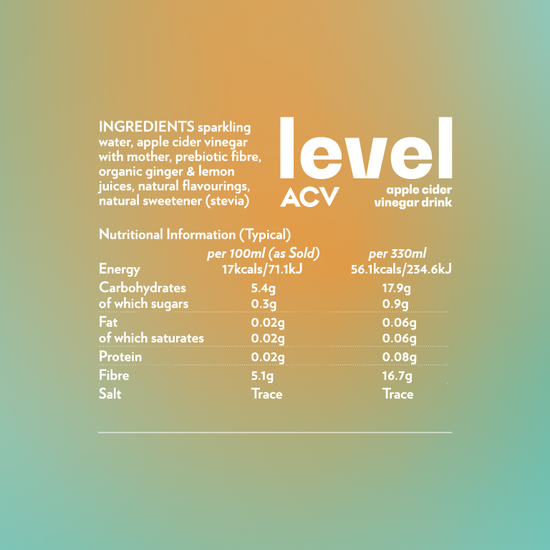 LEVEL ACV contains no added sugar or artificial sweeteners. Lightly sweetened with stevia leaf extract.